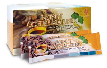 Instant Coffee Mixture with Ginkgo Powder and Ginseng Powder is specially formulated by using high quality ginkgo, ginseng and coffee to produce natural and tasty coffee flavour.